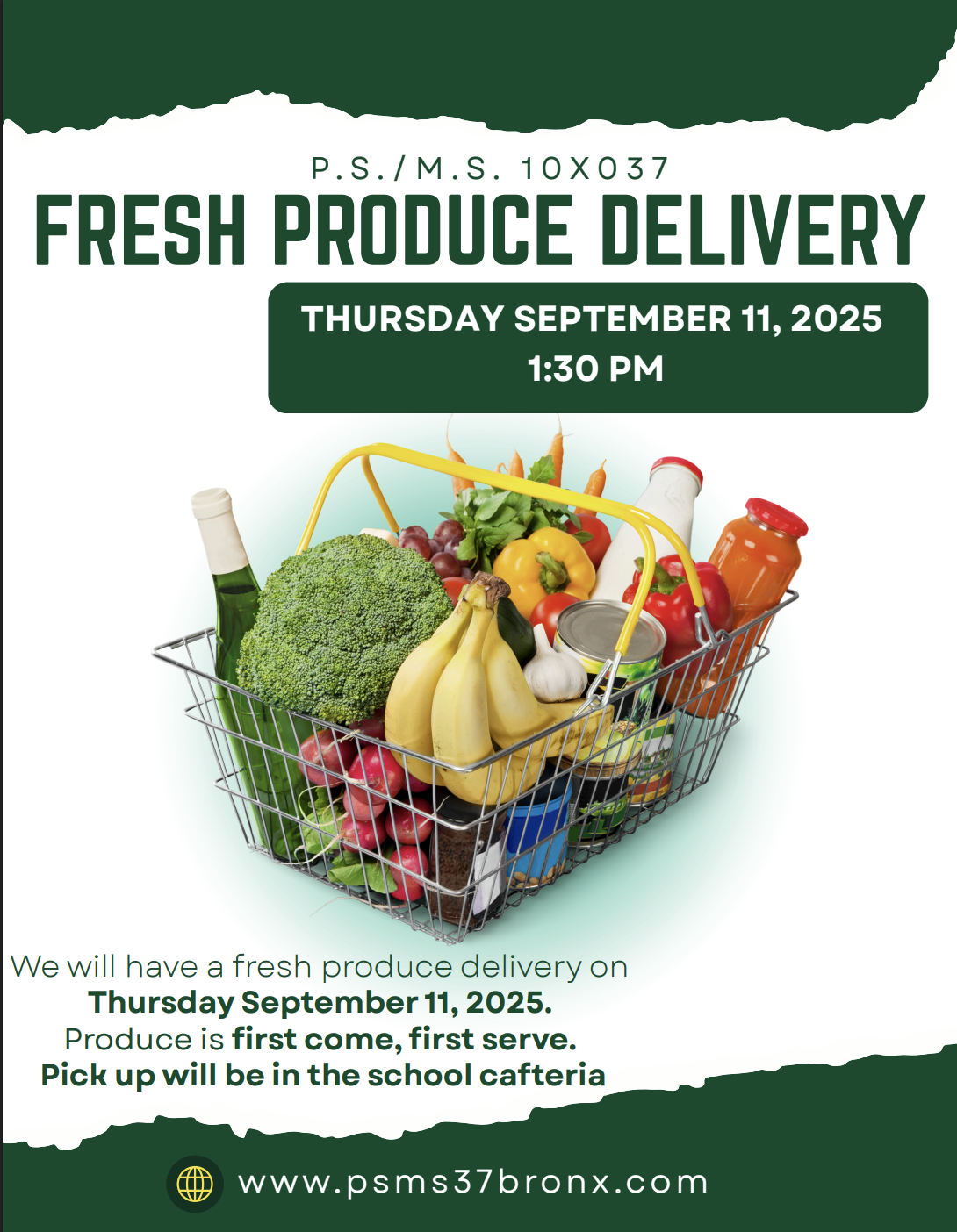 Join us for our first fresh produce delivery this school year! Produce is first come first serve. Please see the attached flyer.